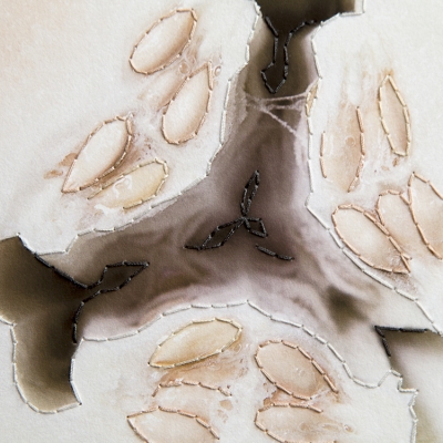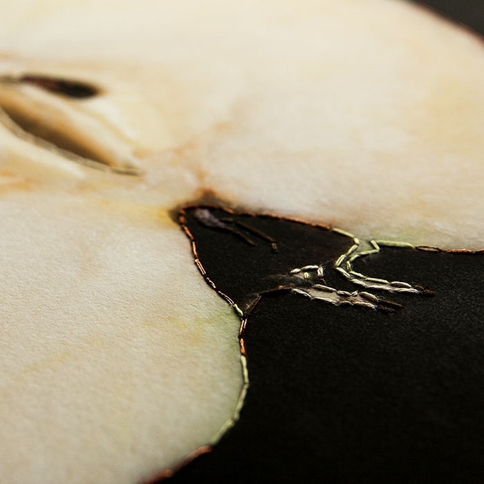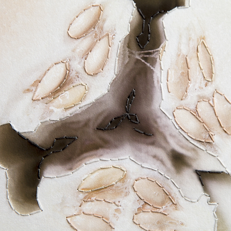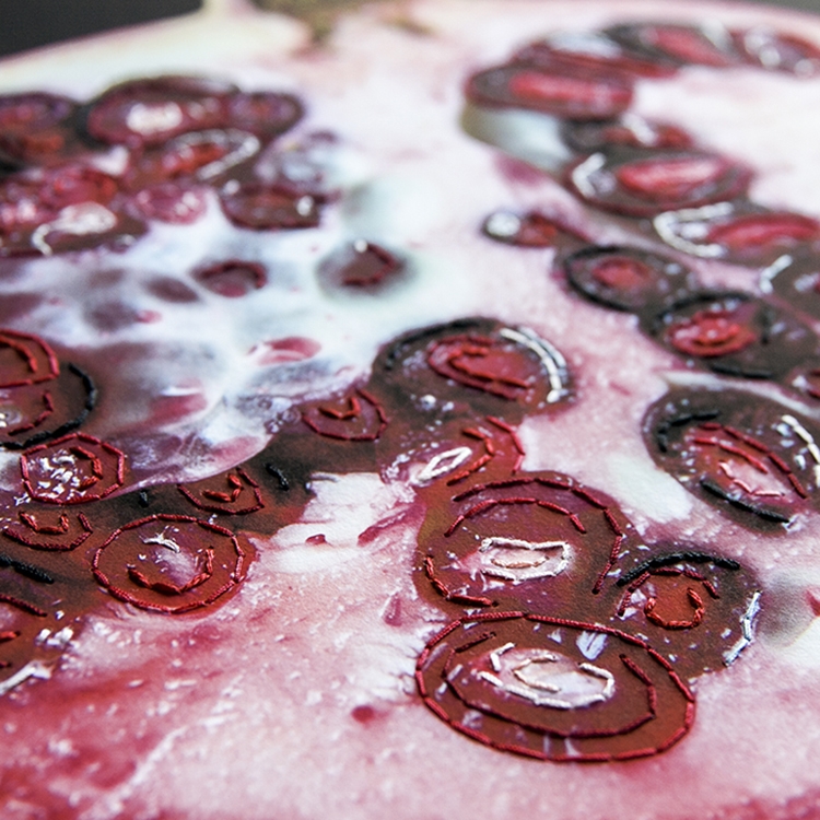 Alle werken zijn 27 bij 27 cm en geprint op 308gr fine-art (bright white) Photo Rag papier. Voor de borduursels heb ik verschillende soorten garen gebruikt.