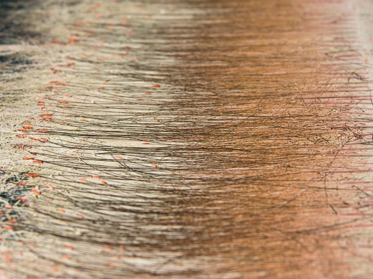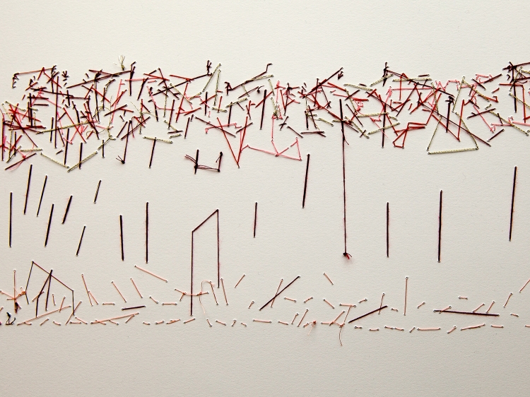 Foto's met afwisselend de originele afbeelding en een detailfoto van het borduursel op de afbeelding.